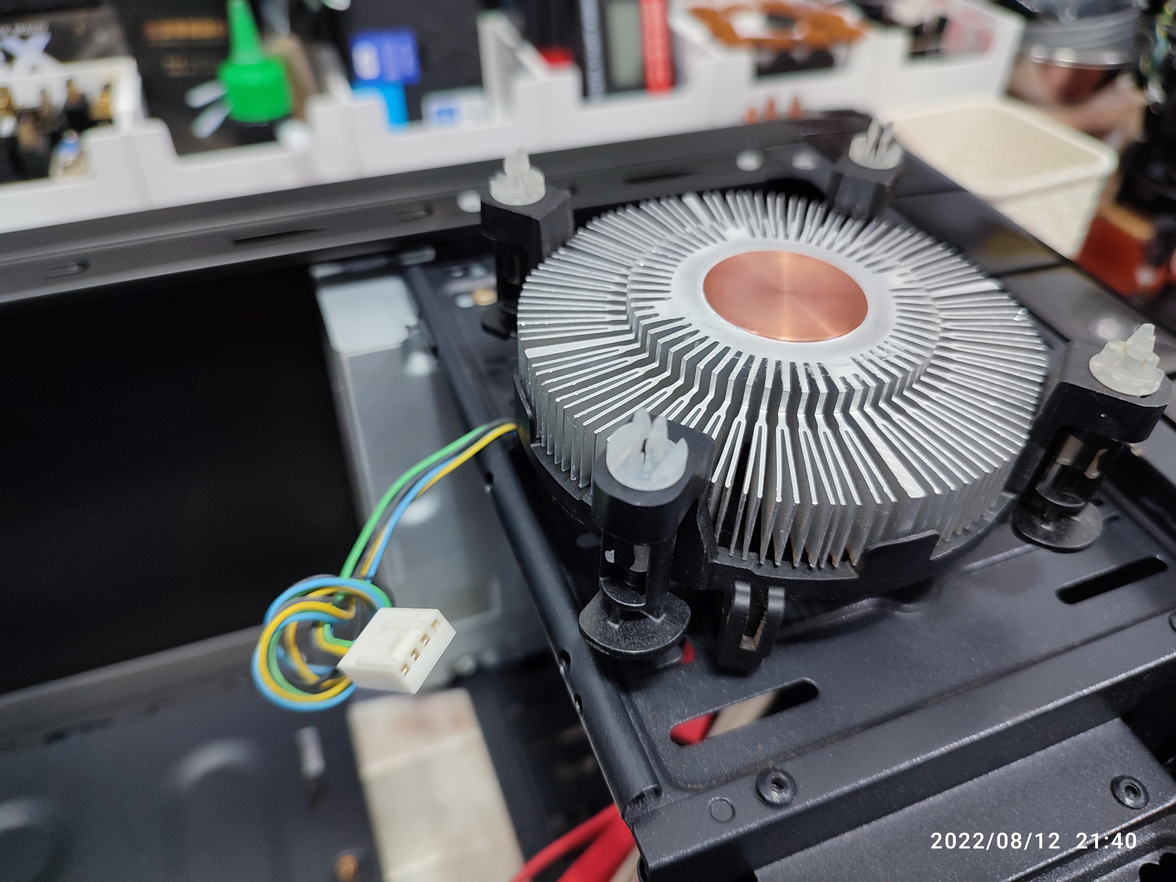 탈장착 테스트를 마치고, 서멀컴파운드를 재도포한 다음, 원래의 인텔 기본 쿨러를 달았습니다.