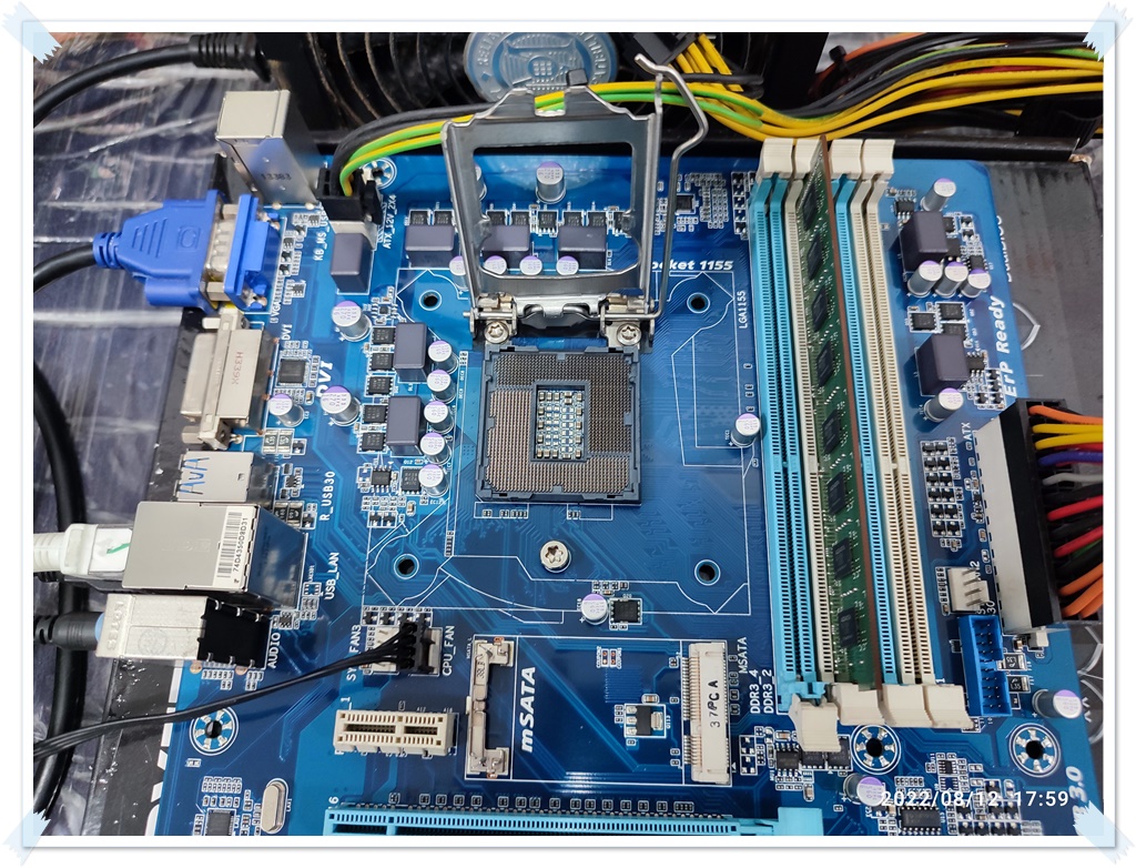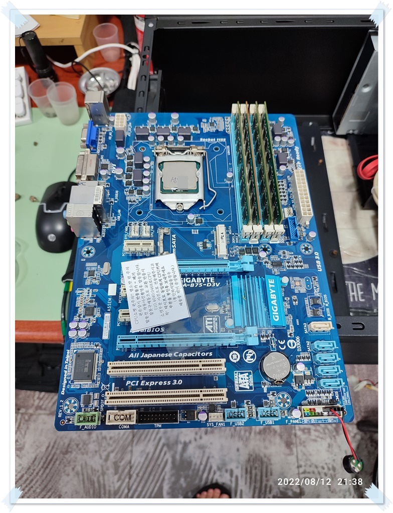 We will prepare the used motherboard you brought, and we will test the operation of the motherboard by installing the components (CPU, RAM). The customer's CPU is a 3rd generation i5 product, but it's still an i5 product, so it's expensive if it breaks down, so I tested it with a 3rd generation celloron CPU. Occasionally, a bad motherboard can cause the CPU to die. It's rare, but it's good to be careful because it's not rare enough to get one or two cases a year. (This is a case of CPU failure due to faulty motherboard.)